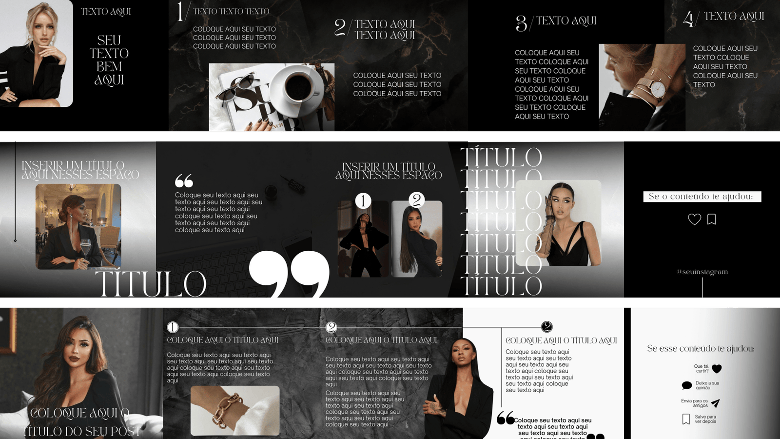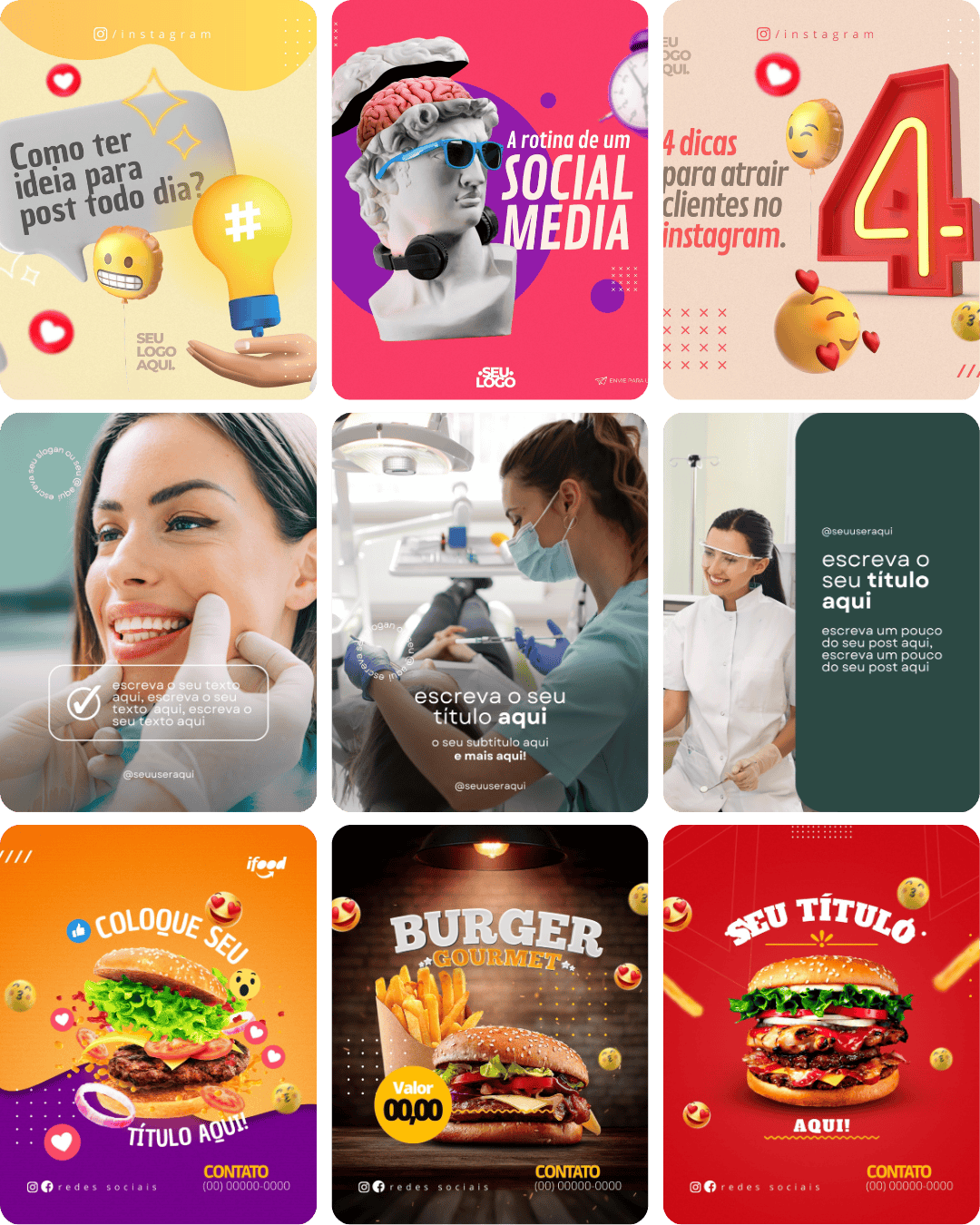 Basta escolher um modelo pronto da sua preferência abrir no Canva GRATUITO, escrever seu texto e postar. Simples assim. Não precisa editar do zero, é só adaptar para o seu nicho.