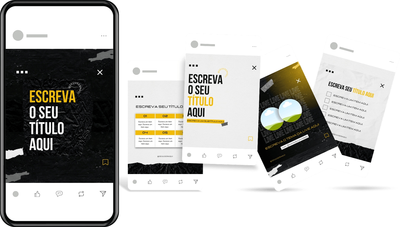 Esqueça a tela em branco do Canva. Centenas de templates de alto padrão prontos e 100% editáveis para você adaptar para seu nicho e postar em menos de 2 minutos.